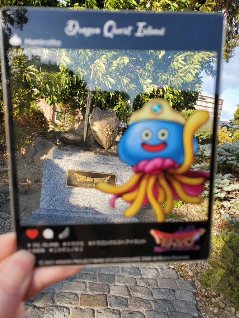 ここまで来たら、記念撮影をしないわけにはいきません。 なんとかしてドラクエアイランドのフレームで撮れないか頑張りました。