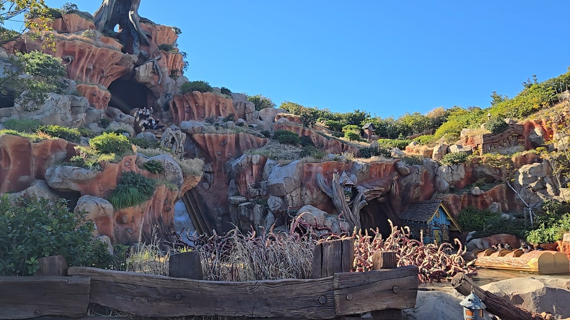 まず私たちが向かったのは、クリッターカントリーにある「スプラッシュ・マウンテン」。 2月の冷え込む時期ではありましたが、「多少濡れても、それもまた思い出!」と、大人二人気合十分で乗り込みました。